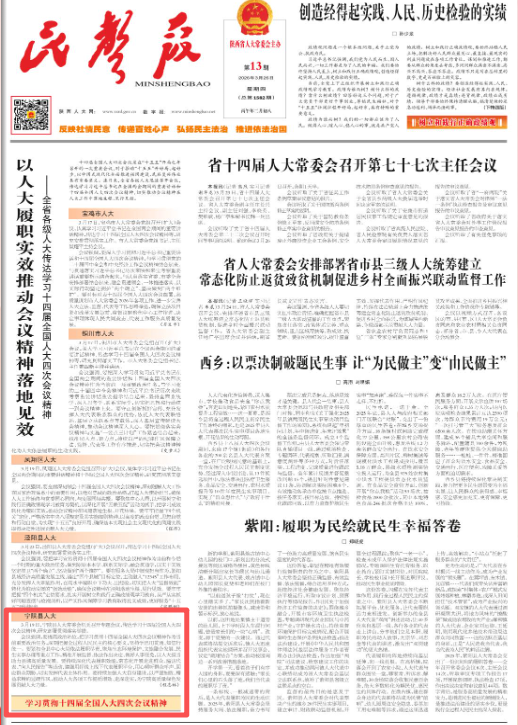 宁陕县人大专题传达学习十四届全国人大四次会议精神